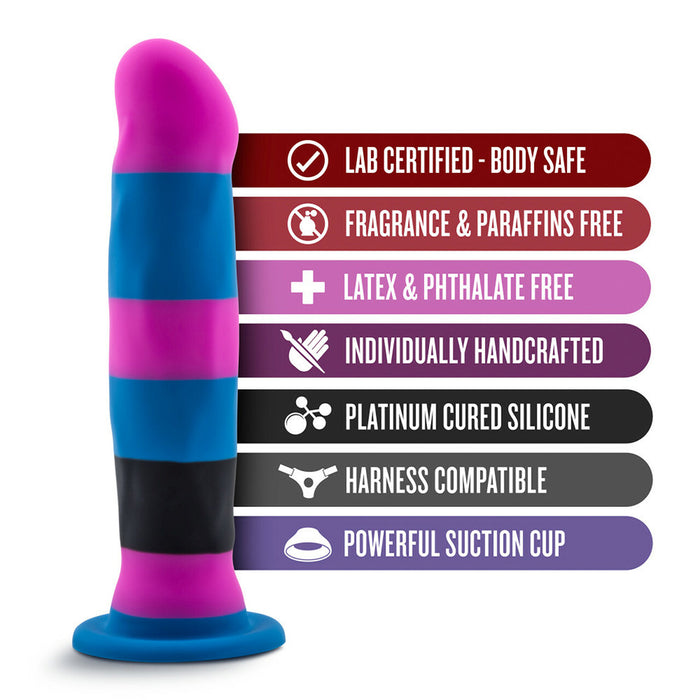 The Avant D6 silicone dildo has a straight shaft with subtle texture for those who desire simplicity, in bright, bold colours. All Avant dildos are non-porous, boilable, and easy to clean. They are harness compatible and feature a deep, strong suction cup base.